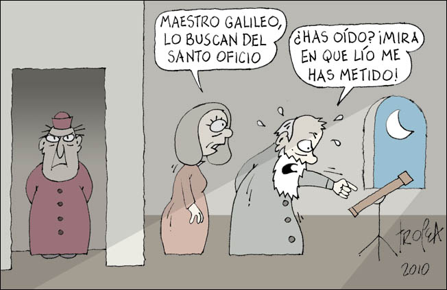 Bien. Una vez le hemos dado más personalidad al Carnaval de la Física, ¡veamos de celebrarlo por todo lo alto! Tal como recordamos hace un año, hoy 30 de noviembre recurre el aniversario de la primera observación con el telescopio el objeto celeste más brillante del firmamento por parte de Galileo Galilei: la Luna. Por esa razón, me gustaría recordar este gran genio de la ciencia moderna con una genial viñeta del blog La Risa de la Ciencia.